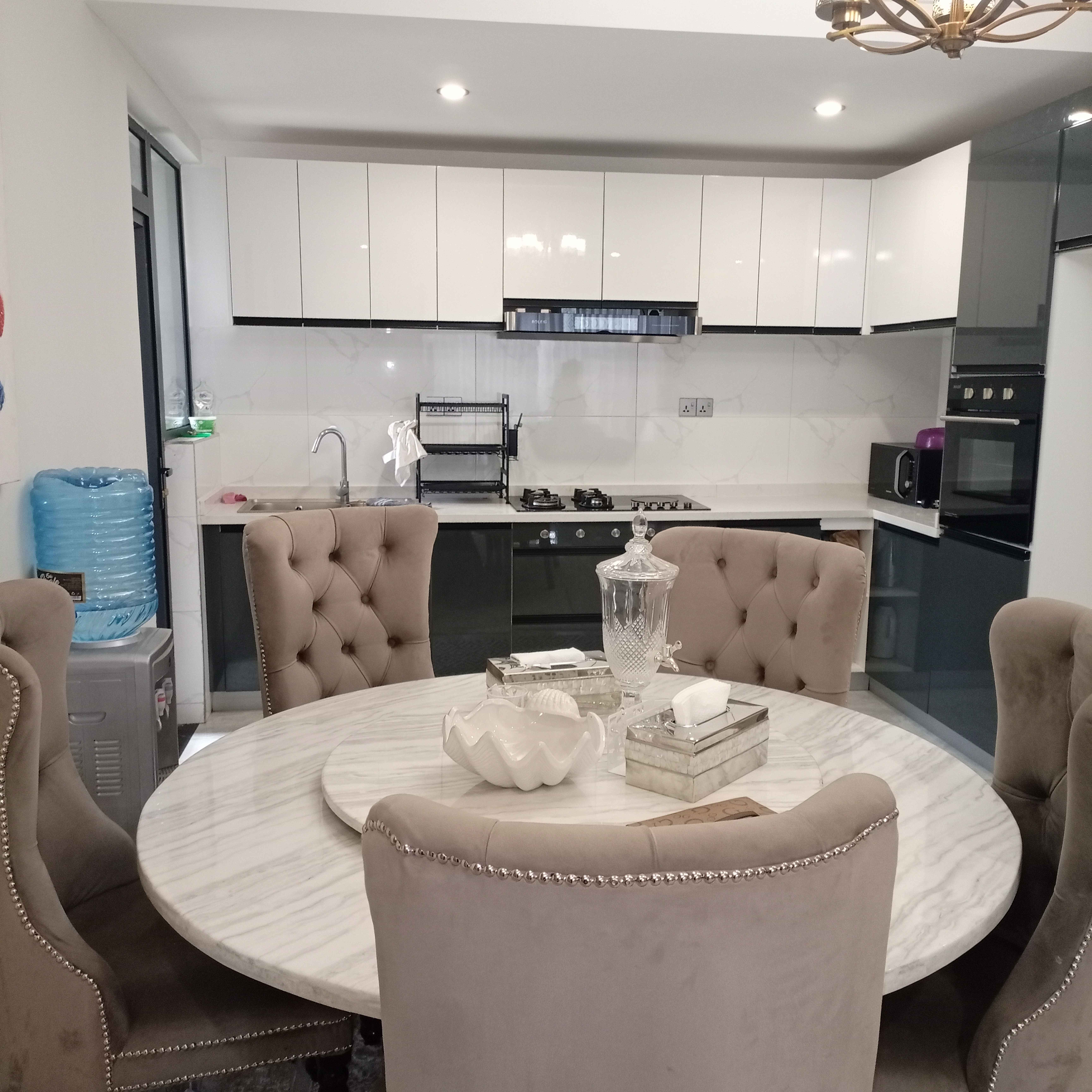 Live in the heart of Kilimani! This modern 3-bedroom 3-bathroom with an extra servant quarter boasts 2000sqft of generous living space. This modern apartment comes with sleek interiors exuding a Scandinavian theme style. From the elevator, you are welcomed to a sun-drenched living room with an eastern view. Adjacent to the living room comes a dining table that can accommodate 8 people without compromising on space.