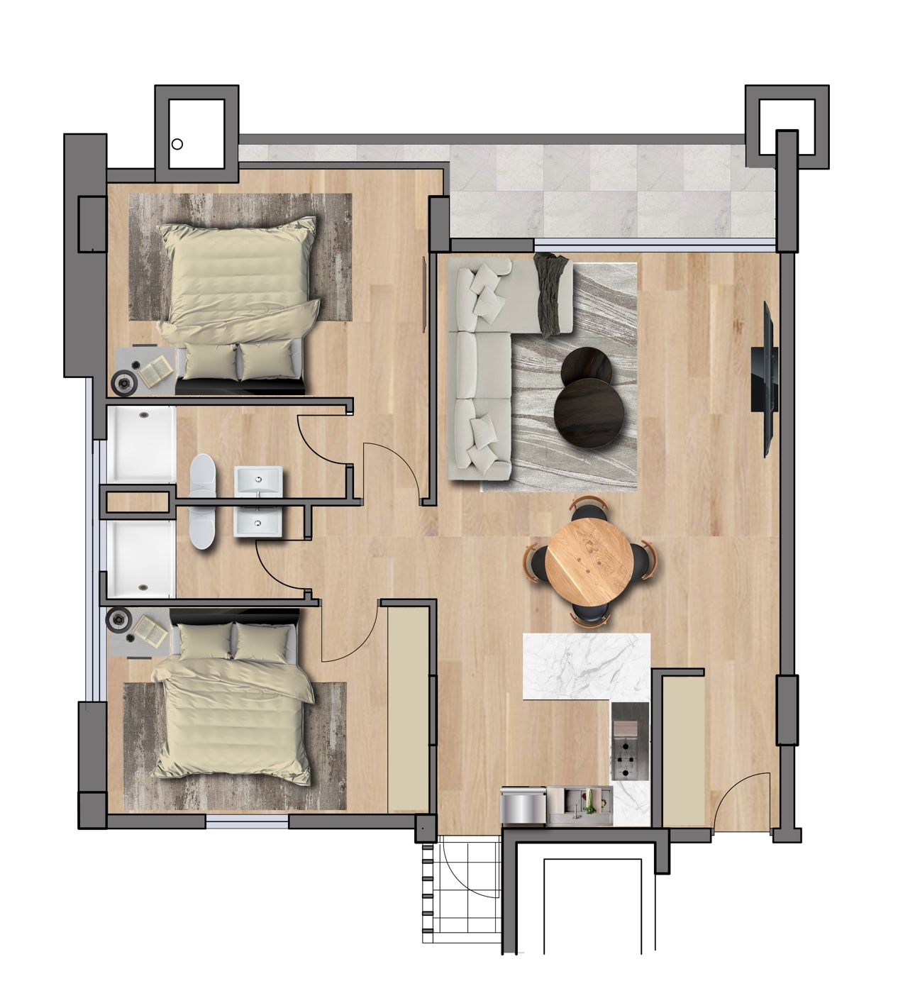 Each unit is thoughtfully crafted to provide you with the utmost comfort and style. Spacious living areas, sleek kitchens, and designer finishes are just a glimpse of what awaits you. Whether you’re a professional seeking a convenient city base or a couple looking for a cozy nest, our units cater to your every need.